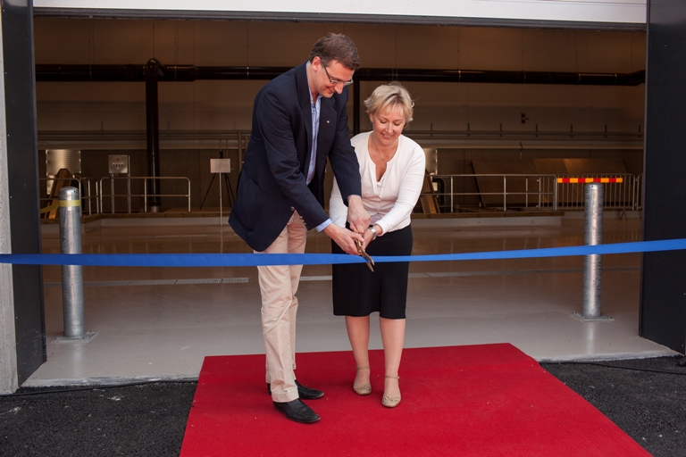 | Anläggningen invigdes av Helene Hellmark-Knutsson (s), ordförande, Mälardalsrådet. och Daniel Dronjak Nordqvist (m), kommunstyrelsens ordförande Huddinge. |